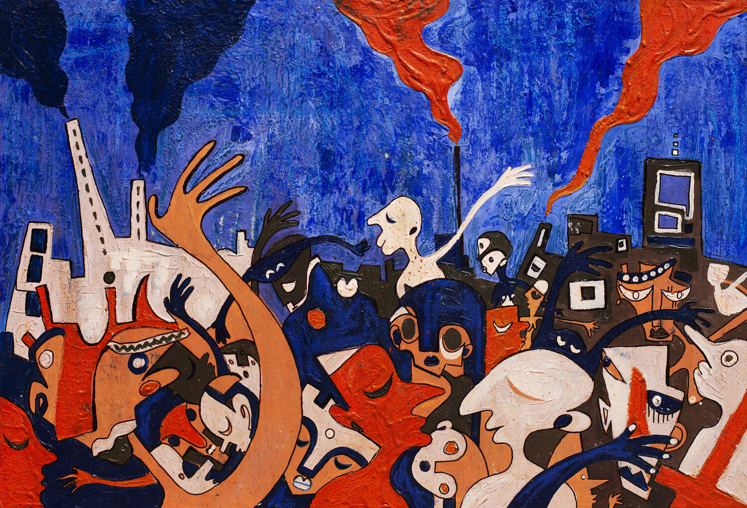 Drawn to her use of bold primary colours and lively themes we knew instantly we wanted to showcase Hiba on our 2022 vintage bottles. The hottest year we’ve had so far in the vineyard (and probably a hard one to beat), we’re confident this vintage is going to be one to remember, and it therefor felt right to represent this with Hiba’s vibrant and passionate artwork. We particularly love her Osmoses collection – a series of colourful paintings and line drawings depicting life in a fast paced and forever more crowded world.