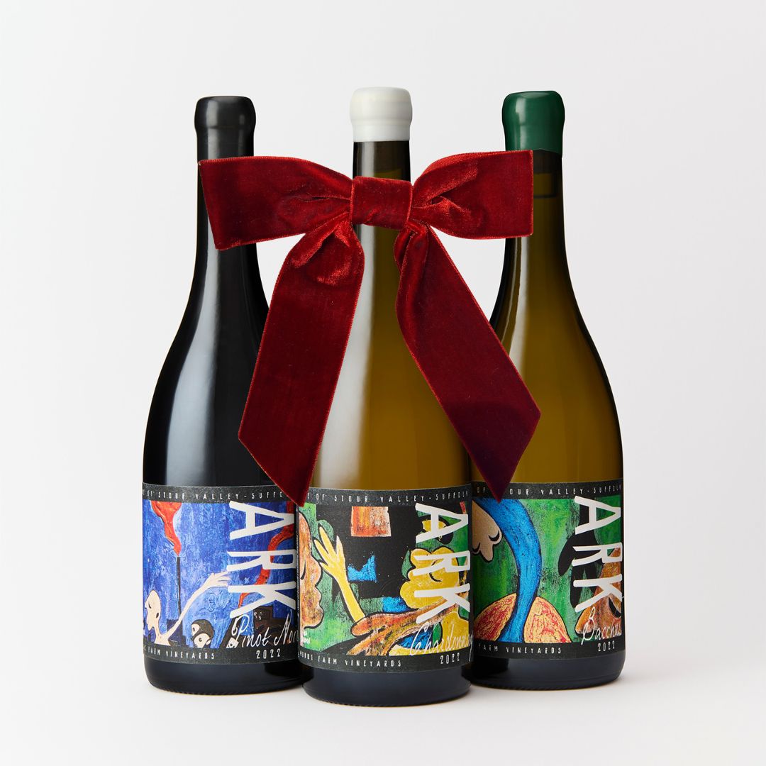 A trio of our 2022 classic English varieties, including single variety Bacchus, Chardonnay and Pinot Noir.